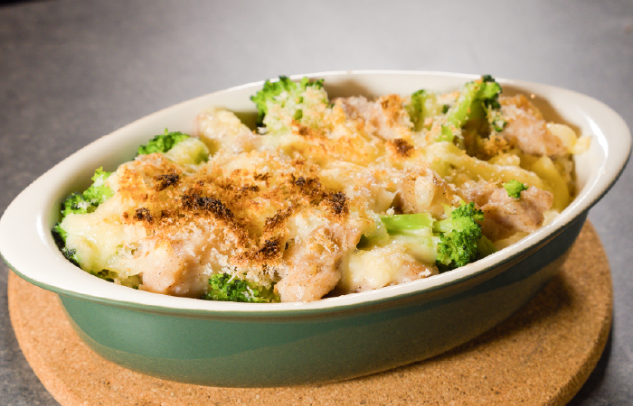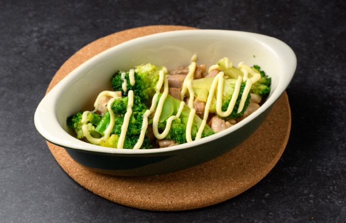 鶏の旨みとブロッコリーのほろ苦さが絶妙なバランス。見た目も楽しい、ちょっとヘルシーな一皿。
