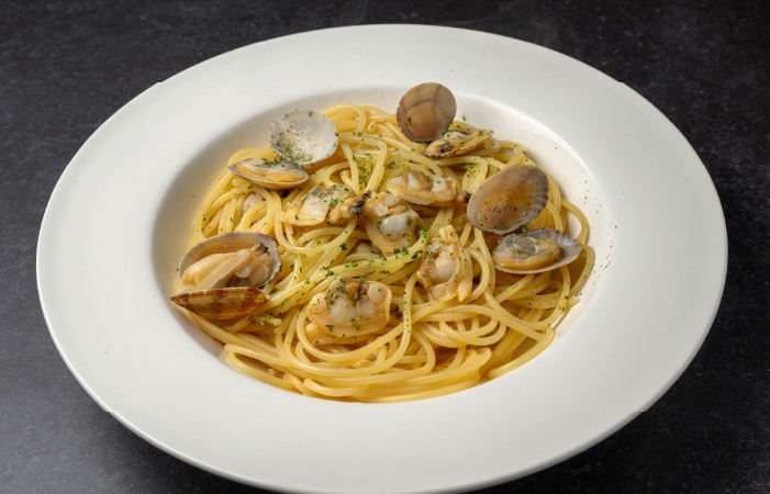 白ワインの風味とあさりの旨みが凝縮されたオイルソールがクセになるパスタです。