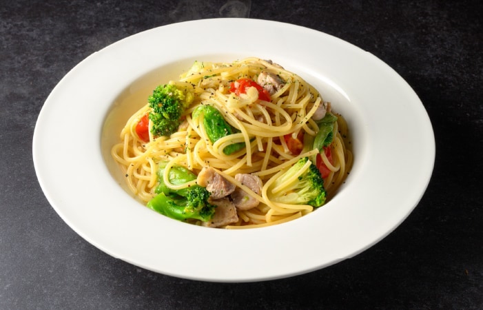 和風だしとたっぷりのたらこを絡めた旨味豊かなパスタです。